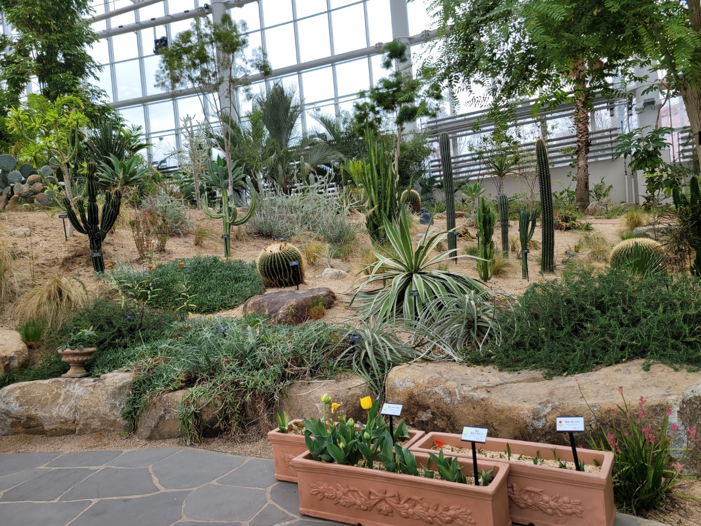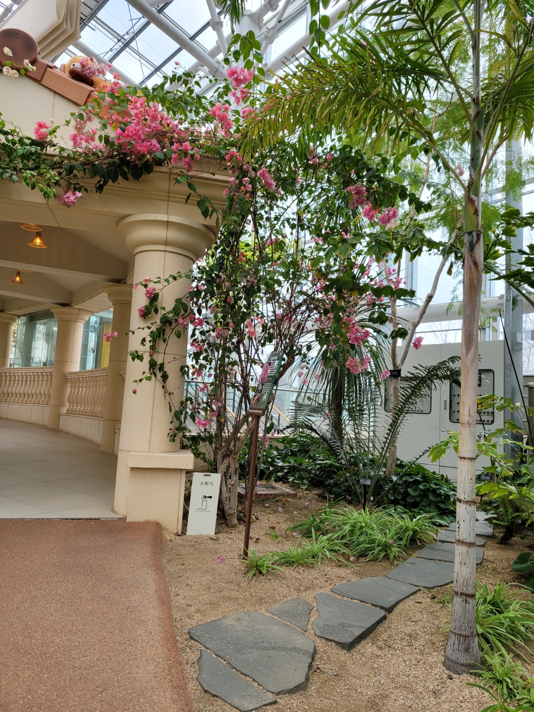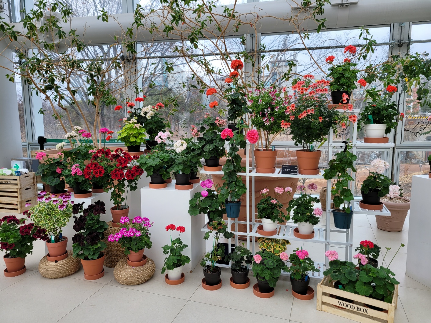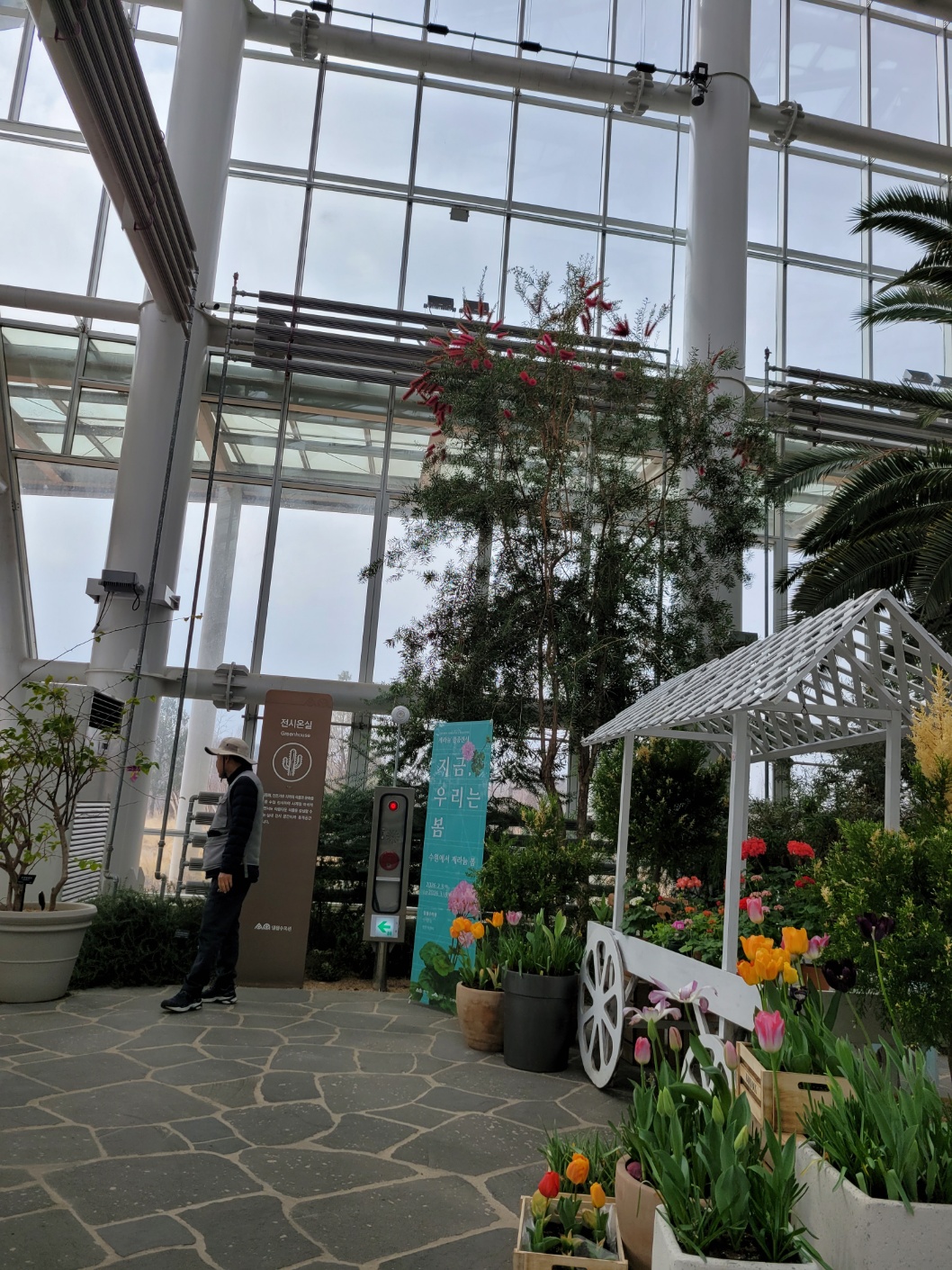 그런데 수원에 있는 수목원은 처음이었다, 날씨는 춥고 흐리고 비가 올 것 같다. 1인 4000원인데 안내원에게 장애인등록증을 보여주며 세명이라니까 돈을 안 받는다. 밖은 추운데 온열대식물원이라 그런지 안은 따뜻하다. 제수씨가 미는 휠체어에 의지한 채 나는 언제나처럼 사진찍기에 바빴다. 월계수 나무부터 제랴늄까지 온갖 열대식물을 보니 저절로 힐링이 된다. 내부도 넓고 깨끗하고 온실정원도 잘 갖춰져 있고, 3층까지 있는데, 휠체어가 편히 다닐 수 있게 잘 갖춰져 있다. 크지도 않고 작지도 않은 실내 공간이 좋기만 했다.