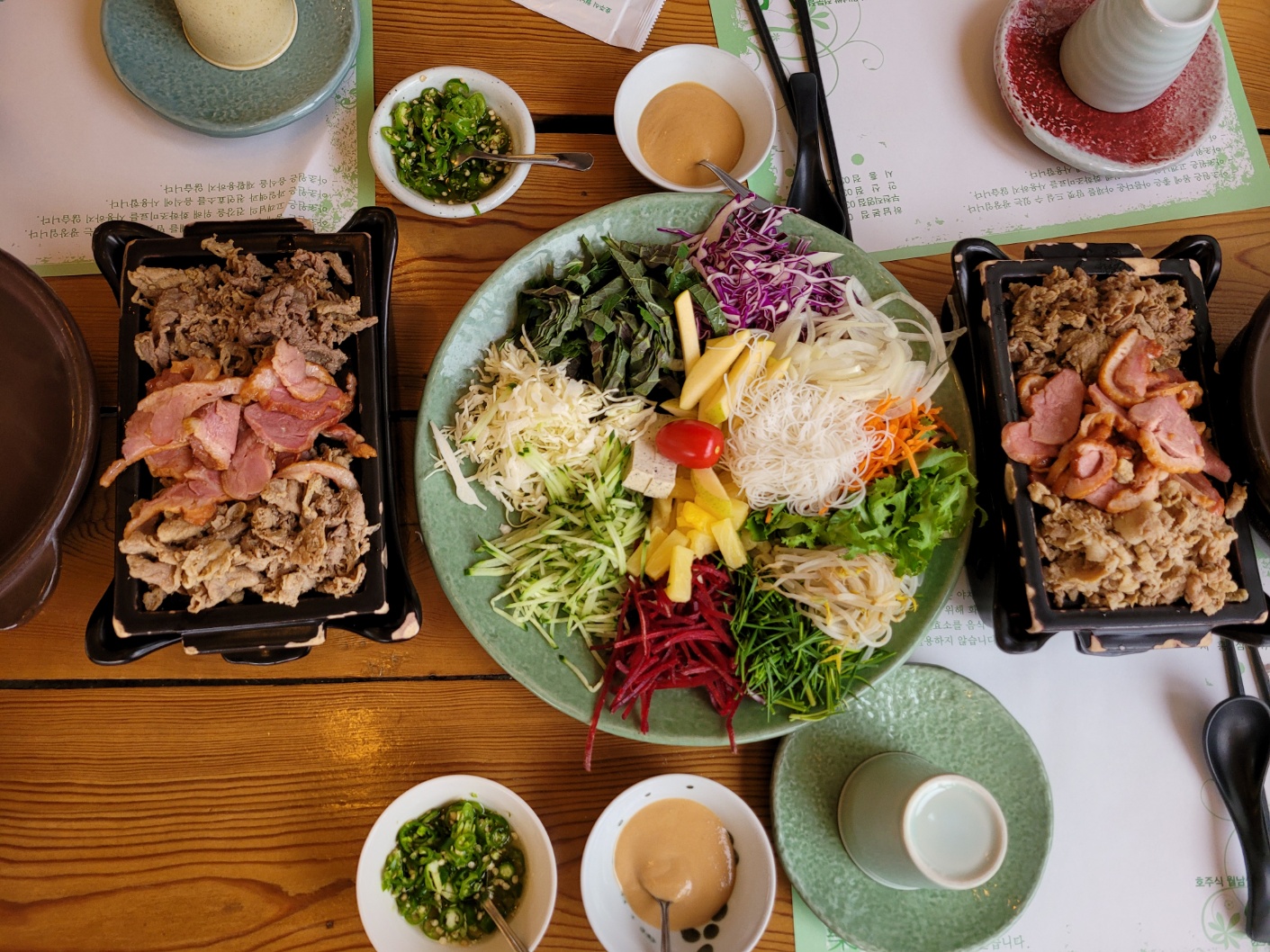 제수씨께서 처음 싸주셔서 먹었는데 맛이 있다. 소고기, 돼지고기, 오리고기와 더불어 각종 야채를 싸서 먹는데 손이 서툰 나는 흘리고 터지는 것이 더 많았다. 신선한 야채를 싸 먹는 것이 특이할 뿐이다. 1인당 2만3천원인데 무한리필이란다. 재료가 신선해서 좋았다. 양이 적은 나는 여나무개 먹었더니 배가 부르다. 그런데 제수씨는 자주 오셨나 보다. 맛있게 먹는 모습이 아름다워 보였다. 처는 오리고기에만 싸 먹고도 맛있게 모는 모습으로 보아 언젠가는 다시 오리라 마음을 먹었다,